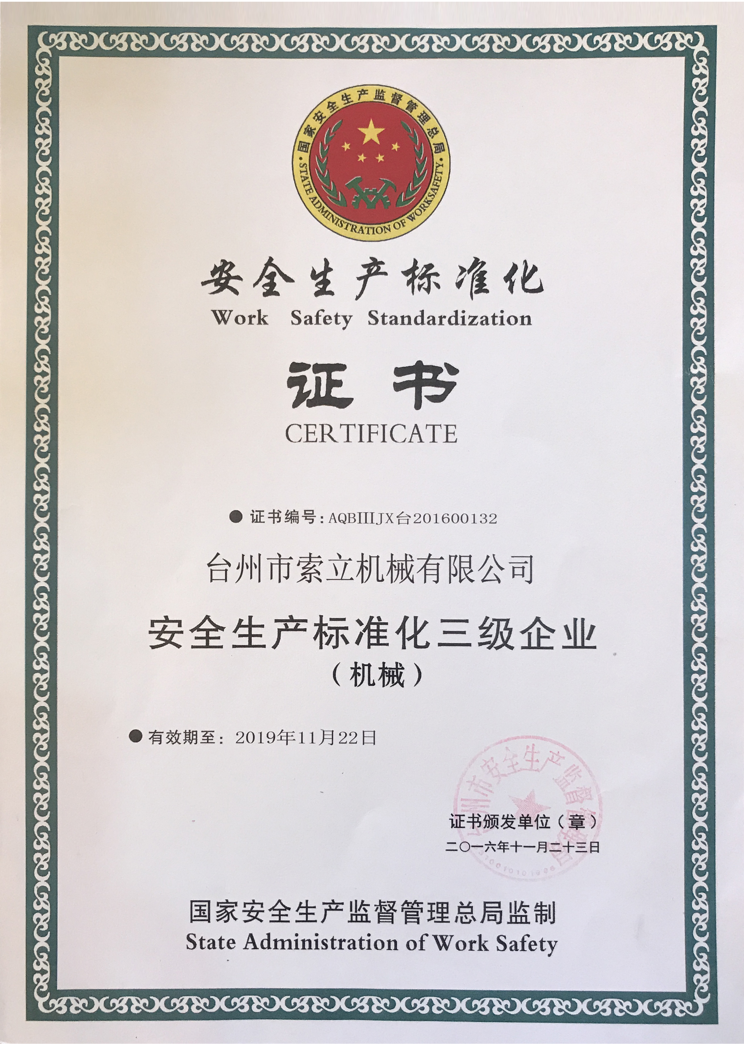 生產(chǎn)管理方面,公司被國家安監(jiān)總局授予“安全生產(chǎn)標(biāo)準(zhǔn)化三級企業(yè)”